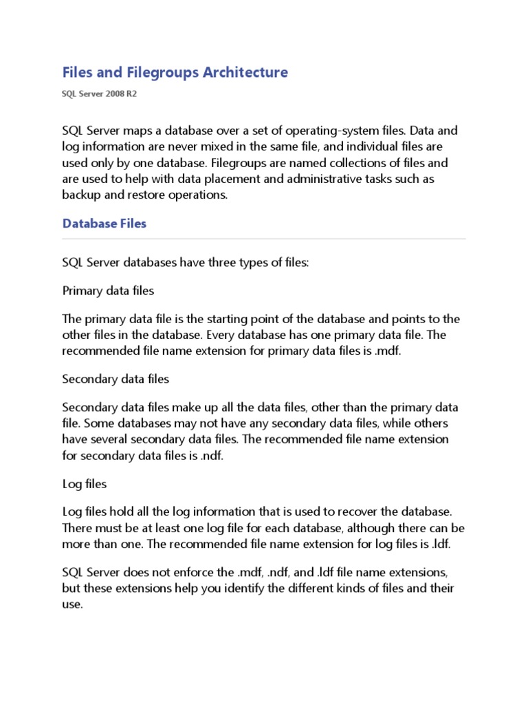 Files and Filegroups Architecture