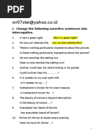 "The greatest thrill in the world is to end the game with a home run and watch everybody else walk off the field while you're running the bases on air." (Al Rosen, third-baseman for the Cleveland Indians, 1947-1956) "Again at eight oclock, when the dark lanes of the Forties were five deep with throbbing taxi cabs, bound for the theatre district, I felt a sinking in my heart. Forms leaned together in the taxis as they waited, and voices sang, and there was laughter from unheard jokes, and lighted cigarettes outlined unintelligible gestures inside." (F. Scott Fitzgerald, The Great Gatsby, 1925) "The swift December dusk had come tumbling clownishly after its dull day, and, as he stared through the dull square of the window of the schoolroom, he felt his belly crave for its food." (James Joyce, A Portrait of the Artist as a Young Man, 1916) "Though we thumped, wept, and chanted "We want Ted" for minutes after he hid in the dugout, he did not come back." (John Updike, "Hub Fans Bid Kid Adieu," 1960) "I drank some boiling water because I wanted to whistle." (Mitch Hedberg) "I generally avoid temptation unless I can't resist it." (Mae West) "When fascism comes to America, it will be wrapped in the flag, carrying a cross." (Sinclair Lewis, 1935) "When I was coming up, I practiced all the time because I thought if I didn't I couldn't do my best." (Herbie Hancock) "And when the broken hearted people Living in the world agree, There will be an answer, let it be. For though they may be parted there is Still a chance that they will see There will be an answer, let it be." (John Lennon and Paul McCartney, "Let It Be") "If I ever opened a trampoline store, I don't think I'd call it Trampo-Land, because you might think it was a store for tramps, which is not the impression we are trying to convey with our store." (Jack Handey, Deep Thoughts, 1992) "According to legend, when Lady Godiva pleaded with her husband, the Earl of Mercia, to cancel a burdensome tax he had levied against his subjects, he agreed to do so only if she rode naked through the city." (Jim Hargan, "The City of Lady Godiva." British Heritage, January 2001) "Experience is what you get when you didn't get what you wanted." (Randy Pausch, The Last Lecture, 2008) I met her when + was walking to school. - As he was sick, he went to she doctor. - I cant go out because my mother is sick. Is I love you, I can do anything for you. - Since she has a desire to marry, she discontinued her studing. - I stopped the work because I was tired. - Whereas I came late, My father punishet me. - His teacher punishet him on the grand that, he came late. Nadhavi was so beautiful that I loved her at first sight. - He studies so hard that many studienst like him. If you help me, I shall be happy. - Unless you tell her about your love, she wont know it - You must do this wheter, you like it or not - I ean help you provide that you must follow my advice - So long as you work hard, you have no problem with me I still no money although I worked hard b. Eventhough hehates me, he lend me the bock c. Though he is rice, he never give me the money d. Whatever he has done, he is your father e. No mather what she sald, I still love her f. She will never succed however much he may try g. He was not refreshed not with standing that he had spent 2 weeks leave