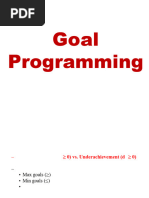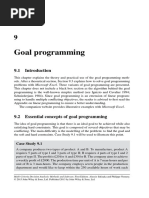 Note that, as long as the unwanted deviations are minimized, we have achieved a satiscing solution. This may mean that we reach a satiscing solution, for our example, whether the prot achieved is 50 or more units. This infers a one-sided measure of achievement. If we wish to reward an overachievement of the prot, then either the model should be modied or we should employ one of the more recent developments in achievement function formatting. The latter matter is discussed in a forthcoming section. For the moment, however, our assumption is that we simply seek a solution to the achievement function given in Eq. (22), one that provides a satiscing result. Realize that Archimedean, or weighted goal programming, makes sense only if you believe that numerical weights can be assigned to the nonachievement of each soft goal. In many instances, goals are noncommensurable and thus other forms of the achievement function are more realistic. One of these is the non-Archimedean, or lexicographic achievement function.