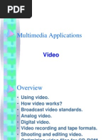 as width height, with the units in pixels: for example, "1024768" means the width is 1024 pixels and the height is 768 pixels. 4. Monitor Refresh Rate: To make and hold the image the image is reconstruct multiple times in order to maintain the appearance of image. Number of times pixel reconstructed on a monitor screen in per unit time is called monitor refresh rate. Higher refresh rate generate flicker less images. 5. Dot-Pitch It govern picture sharpness in color monitor. It is the physical distance of 2 pixel which is measure in mm. By decreasing the dot pitch distance we can increase the image quality. Analog video is a video signal transferred by an analog signal. An analog color video signal contains luminance, brightness (Y) and chrominance (C) of an analog television image. When combined in to one channel, it is called composite video. Analog video may be carried in separate channels, as in two channel S-Video (YC) and multi-channel component video formats. Analog video is used in both consumer and professional television production applications. Digital video is a type of digital recording system that works by using a digital rather than an analog video signal. Digital video comprises a series of orthogonal bitmap digital images displayed in rapid succession at a constant rate. In the context of video these images are called frames. We measure the rate at which frames are displayed in frames per second (FPS). An example video can have a duration (T) of 1 hour (3600sec), a frame size of 640x480 (WxH) at a color depth of 24bits and a frame rate of 25fps. This example video has the following properties: