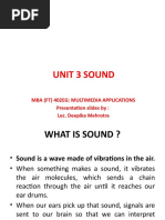 3) space is used to show the gap in two continue recordings. But it can be removed to reduce file size by trimming. Slicing It is used to extract sound beat from the recording at desire position. It is also used to remove unwanted sound beat from recording. Reassembling To rearrange the multiple small sound portion to construct a new sound piece are called reassembling. Resampling - By changing sampling rate both file quality and file size are affected. By decreasing sampling rate we can decrease the file size this is called Resampling. But it has negative effect on sound quality also. Volume control - To change volume in sound beat with time is called the process of volume control. Special effects Effects are used to increase sound quality. The most commonly used effects are Echo effect a mild same node sound is inserted with the original sound. Reverse effect Sound is reverse play back. Mix to combine two or more sound track in one. Fade in/ Fade out At end of Sound beat sound is mild down to give a soft ending. Equalization In this process long section are provided smoothing by using fade in fade out effect. This process is used to balance recording. Time stretching This is used to increase recoding overall length/time without changing sound pitch. This is also used to increase sound file size without changing sound.