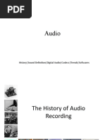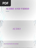 Audio- Signals representing sound and speech which travels throw a medium to transfer data are called audio. The speed of signal is depending on the medium which is normally air or metal. Sound signal is of two types1) Analog sound-It travels in a continuous wave format which changes from the lowest value to the highest value and stores all the values between the ranges. 2) Digital sound- Digital sounds are discrete value which store only two values highest and lowest.