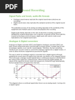 other unit like- to measure kilowatt loss we use dBK while to measure Voltage loss we use dBV. The range of audible sound for human is up to 80Db. Computer Represent sound in digital format while normally sound travels in analog format, so we have to convert analog sound signal into digital format which is called digitalization of sound. Analog to digital conversion: - Analog signals are converted in digital signal for using them in computers. A PCM stream is a digital representation of an analog signal, in which the magnitude of the analog signal is sampled regularly at uniform intervals, with each sample being quantized to the nearest value within a range of digital steps. Pulse code modulation is used to convert analog signal to digital signal. The basic steps of pulse code modulation is1) Sampling 2) Quantinization 3) Binary encoding 4) Line encoding