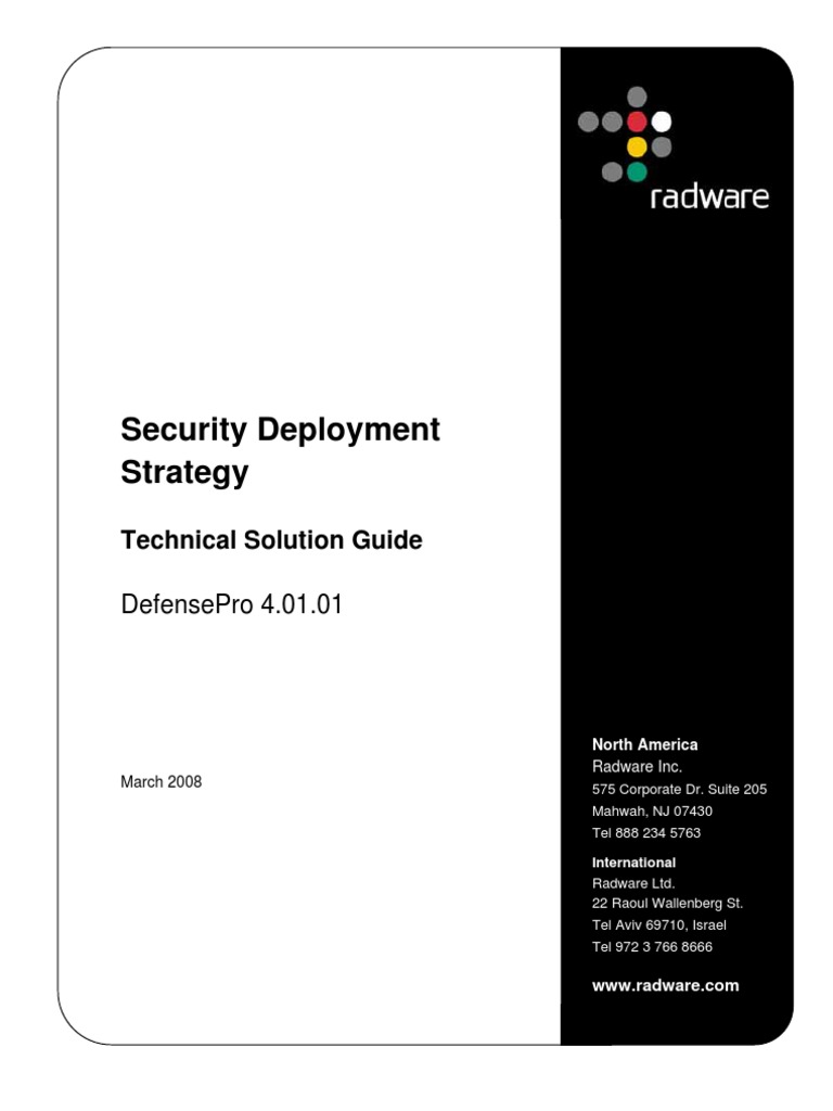 The Technical Solution Guide presents the officially recommended scenarios for installing DefensePro in your network. The purpose of this guide is to assist you in choosing the best installation scenario according to your application security needs.