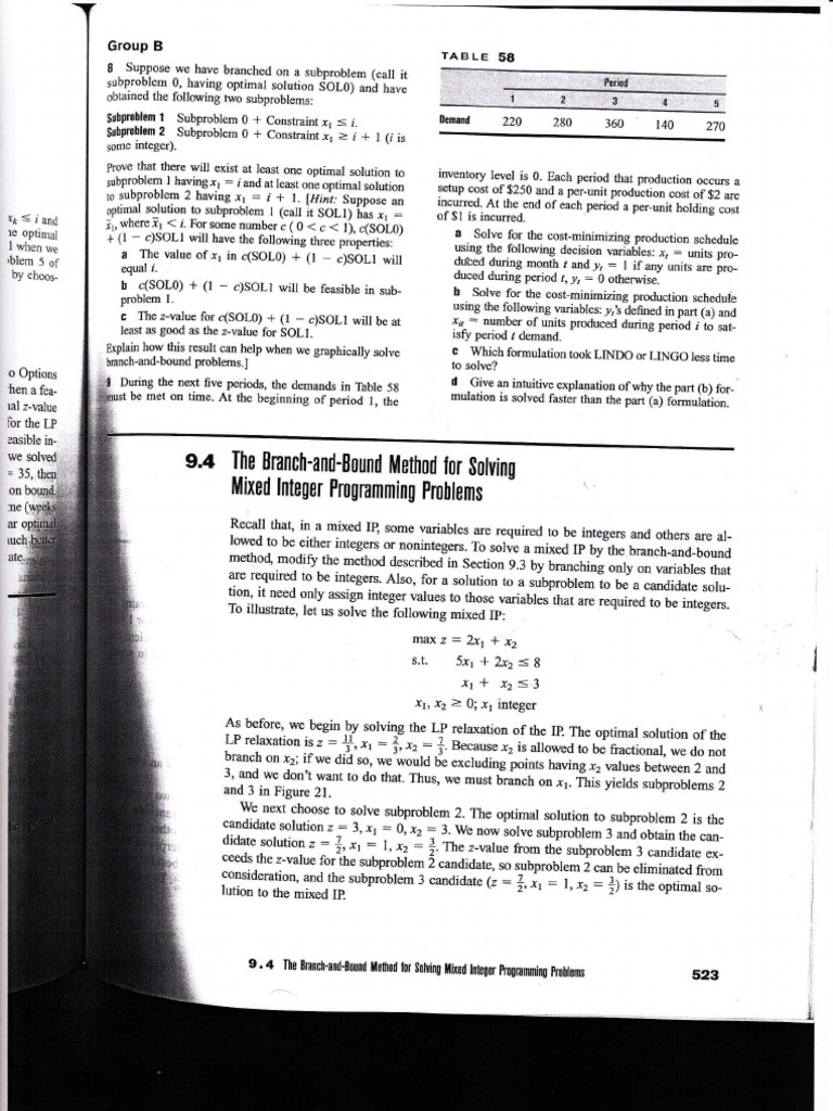 Recall that, in a mixed If, some variables are required to be integers and others are al_ lowed to be either integers or nonintegers. To solve urnk"a n Ly-tf," Uranch_and-bound method, modig, the method describetin Section 9.3 Uy variables that are required to be integers. Also, for a solution," ,rup."ir"- ?"".,V a candidate solube tion,.it need only assign integer values to.tf,o""_uUulf"r'tfiul'ar" " .lq";r"0," be integers. To illustrate, Ier us solve the following mixed Ip: