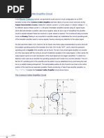 Important Facts: The common emitter amplifier is the most often used transistor amplifier circuit in the electronics industry. The current gain of the transistor in the common emitter configuration is the ratio of the collector current to the base current. In the common emitter amplifier, the input signal is applied between the base and the emitter, and the output appears between the collector and the emitter. For linear operation, fixed DC bias potentials must be applied to the transistor. The amount of collector voltage and the collector current with no signal input control the operating point of the amplifier. A load line is drawn on a set of collector characteristic curves and can be used to determine instantaneous voltages and currents in a transistor amplifier operation. Forward bias on the emitter-base junction can be provided by connecting the base of the transmitter to the power supply voltage (VCC ) through a high value of resistance. The voltage gain of the common emitter amplifier can be very high. The common emitter amplifier input resistance is approximately equal to beta times R IB , the resistance of the forward biased base-emitter junction. The output resistance of the common emitter amplifier is approximately equal to the collector load resistance RL.