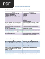 Protects read access to an object. The read lock allows other transactions read access but not write access to the locked area of the table. v o Write lock (exclusive lock) Protects write access to an object. The write lock allows other transactions neither read nor write access to the locked area of the table. v o Enhanced write lock (exclusive lock without cumulation) Works like a write lock except that the enhanced write lock also protects from further accesses from the same transaction. 20. CHAIN END CHAIN? Ans: Chain and end chain are used for multiple field validation in Module pool programming .It is written inside the screen flow logic. 21.How to Debug RFC Function module? Ans: SE38 > Utilities > Settings > ABAP Editor > Debugging Activate the external debugging and choose the New Debugger option in ABAP debugger. Go to the particular place in the code and put break point, pop will appear then choose the HTTP break point. If you are triggering the RFC from SAP portal make sure that both the user ID should be same If the users are different then provide the XI/Portal User ID in the users field. 22.Why sapscripts are client dependent and smartforms are client independent.? Ans-: Smartforms create its own function module so it doesnt need to transport the request through SCC1.As all the Development Object are stored in client independent tables. Whereas Script doesnt generate any function module while executing so we need to transport the request number through SCC1.Sap script is stroed in side the client depended table as a TEXT.so sapscripts are client dependent and smartforms are client independent. 23. Difference between user exit and BADIs? Ans: User exit is for single implementation and it is procedural approach while BADIs are for multiple implementation and object oriented approach.