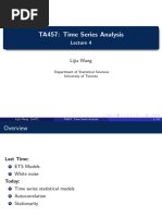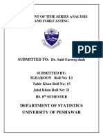Instatistics,datatransformationreferstotheapplicationofadeterministicmathematicalfunctionto eachpointinadataset. Function DETREND BoxCox LAG DIFF Description Detrendsatimeseriesusingaregressionofyagainstapolynomialtimetrendoforderp ReturnstheBoxCoxtransformationoftheinputdatapoint(s) Returnsanarrayofcellsforthebackwardshifted,backshiftedorlaggedtimeseries Returnsanarrayofcellsforthedifferencedtimeseries(i.e. (1 Ls ) d ) INTG Integratesthedifferencedtimeseriesandrecoverstheoriginaldata(inverseofDIFF) TSADD Returnsanarrayofcellsforthesumoftwotimeseries TSSUB Returnsanarrayofthedifferencebetweentwotimeseries TSSCALE Returnsanarrayofcellsforthescaledtimeseries REVERSE Returnsthetimereversedordertimeseries(i.e.thefirstobservationisswappedwith thelastobservation,etc.)forbothmissingandnonmissingvalues. LOGIT Computesthelogittransformation,includingitsinverse PROBIT Computestheprobittransformation,includingitsinverse CLOGLOG Computesthecomplementaryloglogtransformation,includingitsinverse RMNA Returnsanarrayofcellsofatimeseriesafterremovingallmissingvalues SUBNA Returnsanarrayofcellsofatimeseriesaftersubstitutingallmissingvalueswiththe mean/median NxTranspose Convertsaverticalrangeofcolumnsintorowsrangeorviceversa