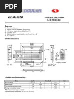 DDRAM/CGRAM Legends used in table:I/D: 1- Increment, 0- Decrement S: 1- Auto Display shift, 0 No display shift D: 1- Display ON, 0 Display OFF C: 1- Cursor ON, 0- Cursor OFF B: 1- Cursor blinking ON, 0 Cursor blinking OFF S: 1- Display Shift, 0 Cursor move R/L: 1- Shift right, 0- Shift left DL: 1- 8 bit interface, 0- 4 bit interface N: 1- 2 lines, 0- 1 line F: 1- 5X10 dots font, 0- 5X7 dots font BF: Busy Flag LCD Controller (JHD162A, HD44780) Commands All LCD functions are actually a combination of above mentioned commands. We will use some example functions to understand how to use commands to build higher level functionality. 2.1 LCD Initialization: To initialize LCD a typical sequence of commands is followed. We also configure all LCD related parameters such as data interface width, display characteristics etc. in this function. Initialization sequence: 1. Wait for power supplies to stabilize. Wait for approx 2-3 ms 2. Write 030 to LCD 3. wait for 50ms 4. Write 030 to LCD 5. wait for 10ms 6. Write 030 to LCD 7. wait for 1ms 8. Set data interface width (Write 030 for 8 bit or 020 for 4 bit) to LCD 9. wait for 50ms 10. Set display lines and font dots 11. Set Display OFF, Cursor and blinking off (Write 00B) 12. Set Display ON, Cursor and blinking off (Write 00F) 13. Set Cursor move direction (I/D) and display shift (S) 14. Clear display (Write 001) 15. Wait 50ms 2.2 Moving Cursor to Home: To move cursor to home position without clearing the screen we will use following commands 1. Write 003 2. Wait for approx 2ms