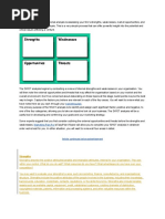 Internal strengths Internal weaknesses Opportunities in the external environment Threats in the external environment