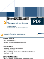 In Equation (9), is numerical damping that defaults to 0.05 but may be changed by the user, h tn+1 /(1 + ), (1 2)/2 and (1 )2 /4. Equations (7) and (8) are used to eliminate the velocity and acceleration at time step n + 1 (the end of the increment) from Equation (9), giving an equation of the form [ ] 1 (1 + ) M+ C + (1 + ) K u n +1 = ( u n , u n , u n ) (10) 2 h2 whose only unknown is the displacement un+1 at the end of the increment. Recalling that the mass, damping and stiffness matrices are all functions of un+1 , it is clear that this EOM must be solved iteratively at each increment in the same way as the static equilibrium equation. Abaqus again uses Newtons method. It is important to note that the subscript ns in the discretized EOM all refer to the solution at the end of increment n. This solution satisfies dynamic equilibrium within the convergence criteria. This is in contrast to the sequence of displacement solutions uk during Newton iteration, which represent displacement predictions that may or may not satisfy equilibrium. Iteration to equilibrium at each increment occurs in both static analysis and implicit dynamic analysis in much the same way. It would be more precise to write, for example, M (un+1,k ) instead of merely M, to emphasize both the dependence of the matrices on the end-of-increment displacement and to indicate iterate k within increment n. The additional terms involving in Equation (9) are included to damp out error in the high-frequency part of the response. More negative values of result in more numerical damping, but there is a limit beyond which accuracy is affected and instability can occur. The HHT method is stable provided 1/3 0, but may suffer from inaccuracy if the increment size is more than about 10% as