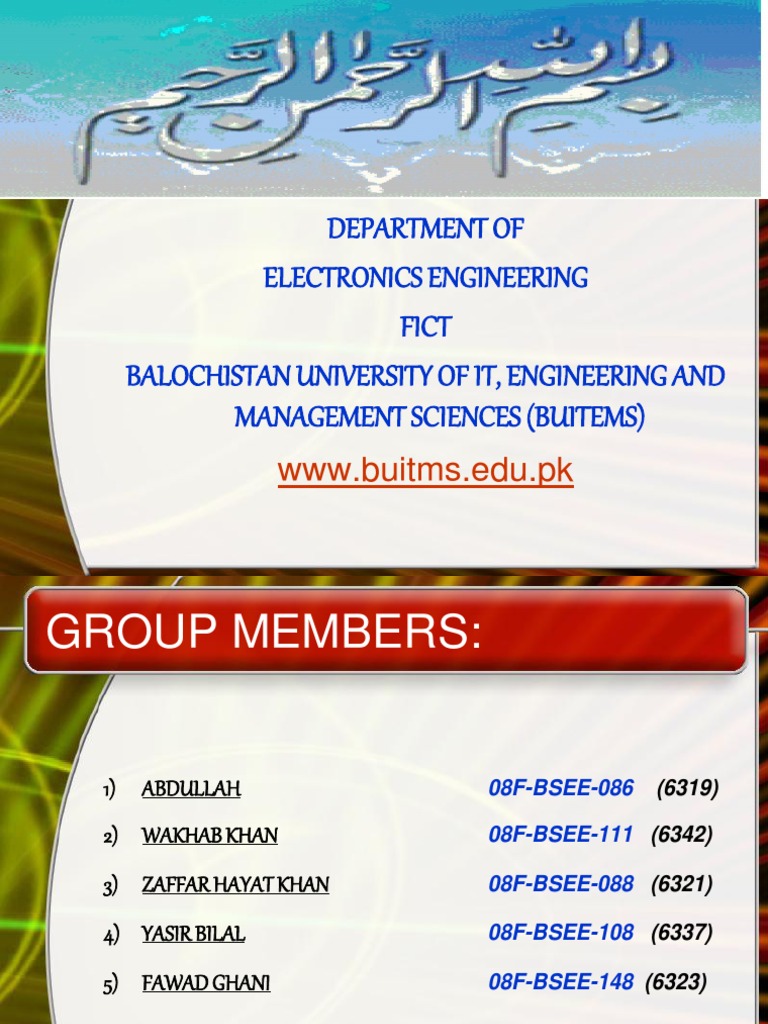 DEPARTMENT OF ELECTRONICS ENGINEERING FICT BALOCHISTAN UNIVERSITY OF IT, ENGINEERING AND MANAGEMENT SCIENCES (BUITEMS)