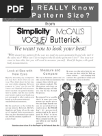 Accurate measurements are the key to good fit. Measurements should be taken at least every 6 months and/or when weight or the figure has varied significantly. Take all measurements snugly, but not tightly, over undergarments usually worn. Also, wear shoes similar to those usually worn. A string tied around the waist and the base of the neck helps establish reference points for measuring. Work in front of a mirror or with a partner to make sure that the tape is straight, parallel to the floor and positioned on the body in the correct locations. Five measurements are needed to determine pattern size and type. See Extension publication E-373, Personal Measurement Chart, for measuring instructions and illustrations. For best results, top and dress pattern sizes are usually selected according the best fit between the high bust and full bust measurement. Select the smaller size pattern if the full bust measurement is 2 or more inches larger than the high bust measurement. Fit across the upper chest is a wiser choice because of the difficulty of altering the upper chest, neck and shoulder areas.