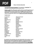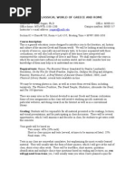 History 116A, Fall 2007, p. 2 Based on the first day of lecture by Ronald Mellor, the film by Eugen Weber, and your initial readings, give a one paragraph response. Web Assignment 2, 5% (due at midnight, 11/06): Find an image of a Byzantine object that attracts your attention. For example, you may choose a photograph of a building, an archaeological site, a mosaic, a statue, an icon, or any other object you find interesting. Its date may range from the third to the 15th century. To find your favorite image, search the www (some good entry sites are listed below), or scan in the image from books (the Arts Library is a good resource), postcards, or photographs. You may also use your own photographs. Then write two paragraphs, no more than 300 words total. The first paragraph should explain why this particular image or object appeals to you and attracts your curiosity. The second paragraph should describe the historical significance of the object of your choice: When and where was it made? Where is it now? What was its purpose? Who were its patrons or users? What does it tell us about Byzantine history? Submit your text and image preferably by e-mail to claudiar@history.ucla.edu, but paper submissions will also be accepted. Quiz, 10% (in class; 10/12) Identification of 10 geographical terms and places on an outline map and of 10 important dates. You will receive a study list one week in advance Essay 25% (due 10/31): Analyze and discuss Ammianus Marcellinus, The Later Roman Empire (A.D. 354-378). Max. 1,500 words (excluding footnotes and bibliography). Your argument should be based on your reading of the sources, clearly structured, with references to the page numbers in the texts you have read. Essays delivered after the due date will be downgraded one grade point per day of delay. In an introductory paragraph, describe Ammianus life and works. Include a thesis that will focus on your argument. The following issues should be considered as you construct your thesis and argument: Who was Marcellinus? Why did he write his history? Who was his audience? How does Marcellinus describe his characters? How does his portrayal of them reflect his own point of view? In addition to his main characters, what are the issues of greatest concern to Marcellinus? What are Marcellinus intentions and biases as an author? How successful is Marcellinus as a historian? How do historians use a source like Marcellinus? In a final paragraph, summarize your conclusions. Support your argument with short quotations from the text, and refer in the notes to longer passages from the text. Midterm Exam, 25% (in class; 11/16) This will consist identification questions and one essay. You will be asked to identify ten terms mentioned and discussed in lecture, give their dates (if applicable), and explain their historical significance. A study list will be distributed a week beforehand. Final Exam, 30% (take home; 12/05, 5.00 pm; submit via e-mail) Max. 2,000 words, typewritten. Exam questions will be distributed in class two weeks before the due date.
