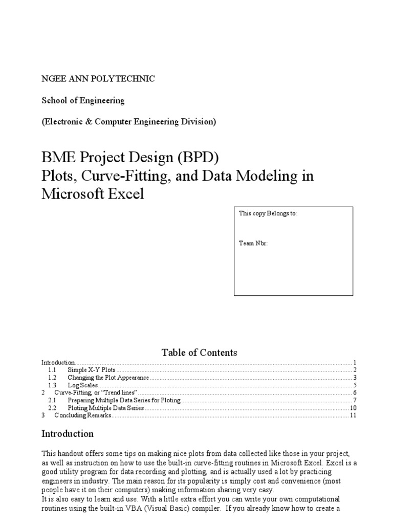 as well as instruction on how to use the built-in curve-fitting routines in Microsoft Excel. Excel is a