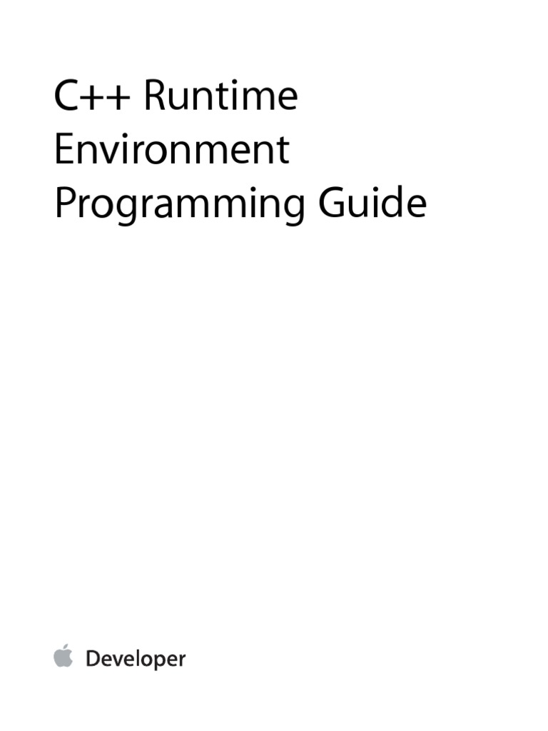 All nontrivial C++ programs must be linked with the standard C++ library, also known as the C++ runtime. This library includes the implementations for components such as I/O streams, STL container classes, the low-level exception handling runtime, and other low-level types and classes. This document provides background information about the C++ runtime that you may find useful if you are developing C++ programs. It also offers information about Apples C++ support and offers tips on how to write more compatible C++ libraries and programs.