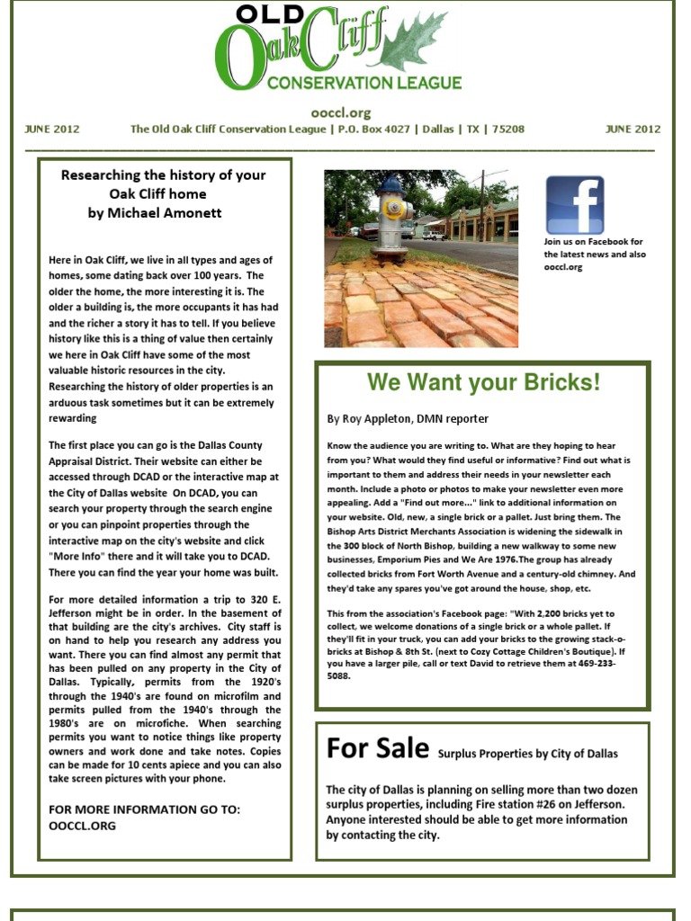 JUNE 2012 The Old Oak Cliff Conservation League | P.O. Box 4027 | Dallas | TX | 75208 JUNE 2012