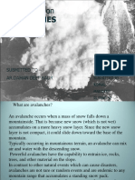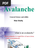 An avalanche is a sudden rapid flow of snow down a slope, occurring when either natural triggers or human activity causes