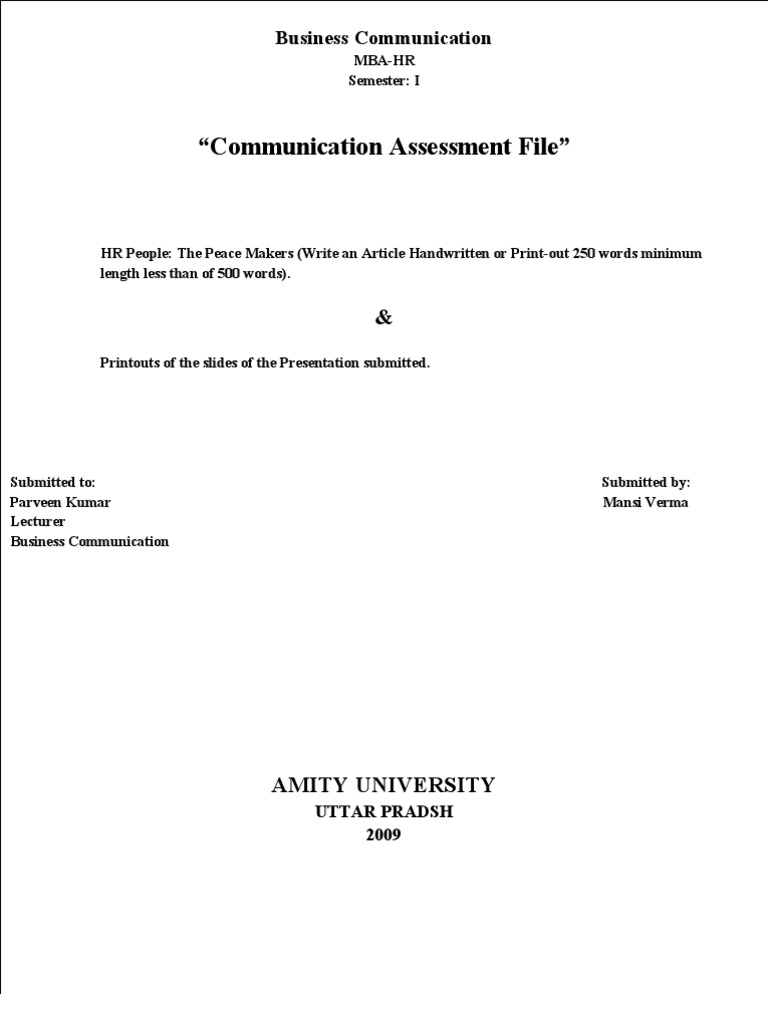 Submitted to: Parveen Kumar Lecturer Business Communication