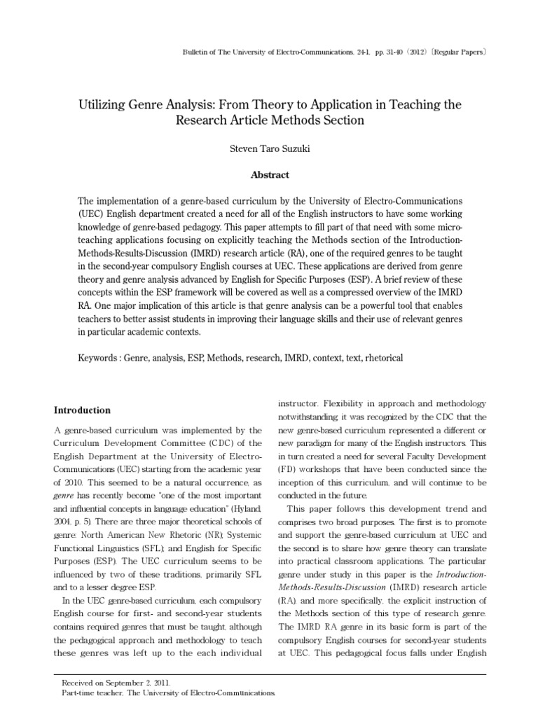 in the second-year compulsory English courses at UEC. These applications are derived from genre
