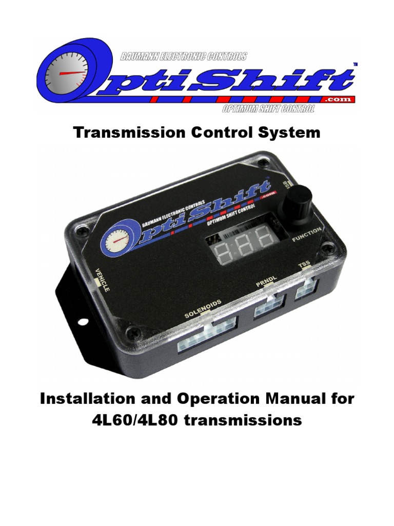 Installation and Operation Manual for 4L60/4L80 transmissions