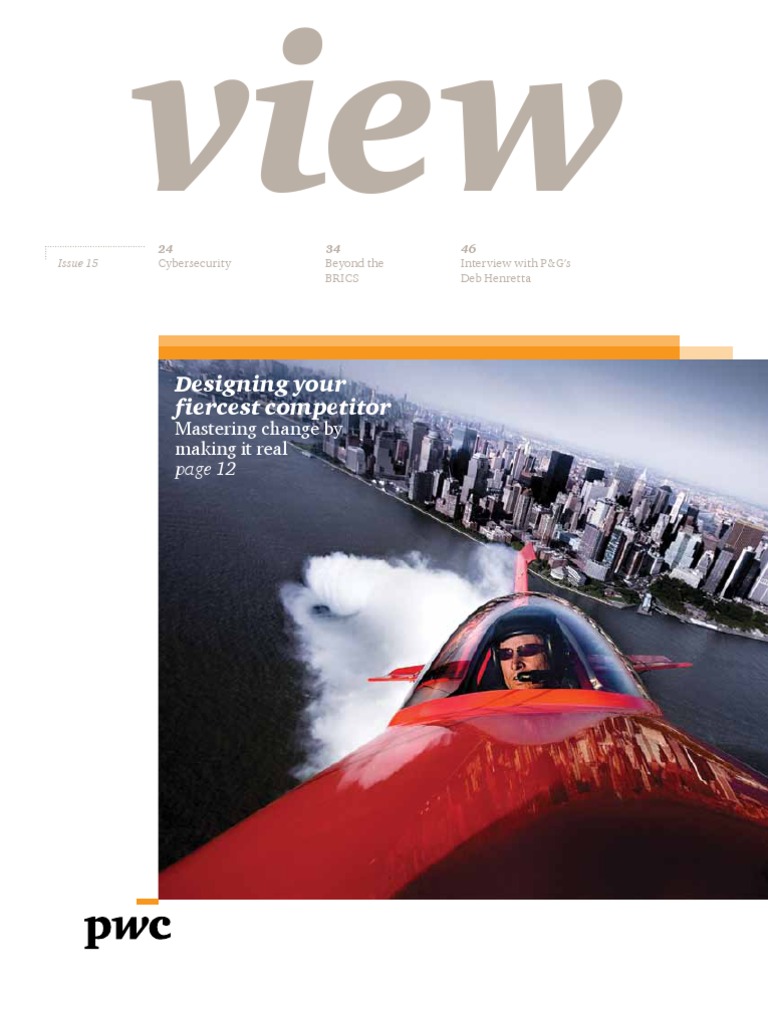 To request additional copies of View or to comment: www.pwc.com/view. PwC firms help organisations and individuals create the value theyre looking for. Were a network of firms with 169,000 people in more than 158 countries who are committed to deliver quality in assurance, tax and advisory services. Tell us what matters to you and find out more by visiting us at http://www.pwc.com/. 2012 PwC. All rights reserved. PwC refers to the PwC network and/or one or more of its member firms, each of which is a separate legal entity. Please see www.pwc.com/structure for further details. This content is for general information purposes only, and should not be used as a substitute for consultation with professional advisors. The information contained in this document is for general guidance on matters of interest only. The application and impact of laws can vary widely based on the specific facts involved. Given the changing nature of laws, rules, and regulations, there may be omissions or inaccuracies in information contained in this document. Before making any decision or taking any action, you should consult a competent professional adviser. Although we believe that the information contained in this document has been obtained from reliable sources, PricewaterhouseCoopers is not responsible for any errors or omissions contained herein or for the results obtained from the use of this information.