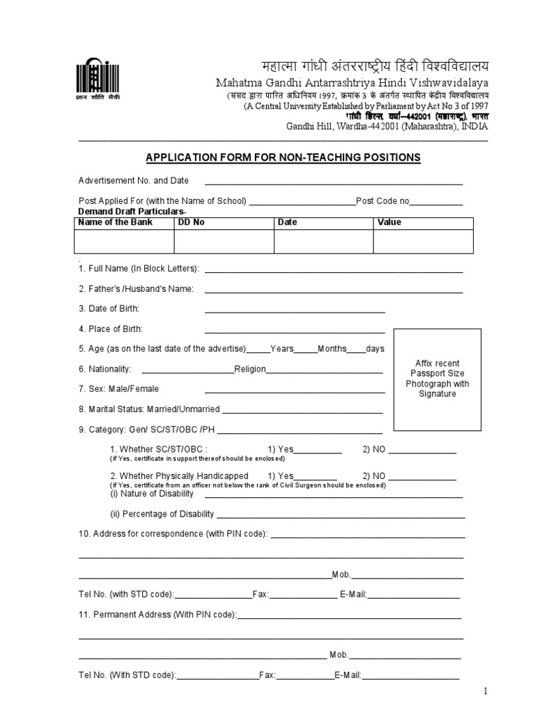APPLICATION FORM FOR NON-TEACHING POSITIONS