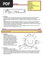 LASER PRINTER: There are typically seven steps involved in the laser printing process: 1) Raster image processing 2)Charging 3)Exposing 4)Developing 5)Transferring 6)Fusing 7)Cleaning Laser printers use electrophotography, or an electrophotostatic process, to form images on paper. The basis of the principles involved here is the science of atoms oppositely-charged atoms are attracted to each other, so opposite static electricity fields cling together. Its hard to imagine that this has anything to do with printing, but in actuality, this is precisely what makes laser printers work. Each horizontal strip of dots across the page is known as a raster line or scan line. Creating the image to be printed is done by a Raster image processor (RIP), typically built into the laser printer. The source material may be encoded in any number of special page description languages. The RIP uses the page description language to generate a bitmap of the final page in the raster memory. Inside the laser printer is a drum, or photoreceptor. Its made of highly photoconductive material that reacts to light, and is electrically charged by the corona wire. As the drum turns, a laser beam shines on it, discharging specific areas. This pattern of discharged areas is ultimately what determines the images thatll be printed. The next step is to coat this pattern with a fine black powder called toner. The toner has been given a positive charge, which allows it to stick just to the pattern, and not the rest of the area. The pattern of toner is then attracted magnetically onto the paper, which is passing the drum on a belt. Then the paper is discharged, which releases it from the drum. Now that the image or pattern is on the paper, we have to make sure it stays there. Thats done by heated rollers, called the fuser, which melt the toner particles right into the paper. The paper is then pushed into the output tray, and you have your printed page.