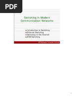 Most commonly produced form of switch (c.f. academic emphasis on space-division switching) A single transmission medium shared by all input and output port s Often a bus, but can use unidirectional transmission to reduce fanout: ring, dual ring/bus, folded bus Dispersion is (relatively) manageable in a centralized switch Wide buses to achieve high bandwidth, e.g. 424b (53B=ATM cell) (utilisation may be low for small packets) Bandwidth often equals aggregate of input ports Access from input ports is usually fixed round-robin TDM; but other schemes are possible (e.g. Distributed Queuing MAC) Output ports pick off packets destined to them. Downside: high-speed filtering