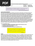 A Dr. Katy Pearce kep63@georgetown.edu Office hours in CarBarn 300 on Monday (3:30pm-5pm) and by appointment (or Skype/Google chat) Description: This course is an introduction and overview of qualitative research methods--an umbrella term that includes an array of techniques typically used to describe, code, and interpret naturalistic research. The course examines the role of theory in guiding the design and analysis of qualitative data. As such, it explores a variety of qualitative approaches in communication studies, taking into account issues of epistemology (different ways of knowing), methodology (ways of examining), and representation (ways of writing and reporting). The course is more of a practicum to help students learn about different approaches and to acquire an array of skills for using various techniques, including qualitative interviews, participant observation, sampling, and ethnographic field notes and various forms of data analysis (e.g., thematic analysis, constant comparison methods, narrative analysis, language and discourse analysis, and computer assisted data analysis). As this is an intensive summer course, things will move quickly. Please ensure that you have sufficient time to complete the readings and assignments. Course Objectives: To learn about the foundations of qualitative methods; To become familiar with a variety of approaches for doing qualitative research; To learn how to design and conduct a qualitative research project; To gain skills in drafting research questions, observing situations, conducting interviews, and developing coding techniques; To develop criteria for evaluating qualitative research, assessing the rigor of it, and understanding its application. Readings: We will also read theoretical pieces and exemplars of qualitative research that illustrate particular forms of data collection, types of analyses, ethical issues, and qualitative approaches. Nearly all of the readings are from three books, available from Amazon, the bookstore, and the library. Academic integrity: All students are expected to adhere to GUs academic integrity and code of conduct policies. This includes plagiarism. This is a serious topic and all assignments will be reviewed for integrity. Please familiarize yourself with these policies. Accommodations: Students with disabilities should register with GUs Academic Resource Center (arc@georgetown.edu) and meet with the instructor about accommodations. Assignments: Research Practicum. Throughout the class you will be asked to present short written assignments. These are designed to aid in learning the process of conducting qualitative research and include: RP1: conducting an one hour observation and writing field notes (and handing in the notes) (20%), RP2: developing an interview guide and conducting one interview (and handing in the transcript) (20%), RP3: coding a text (10%) RP4: writing up the coded text (40%) Specific guidelines for each assignment will be handed out in the class before the assignment is due. They will be submitted via Google docs, so please create a Google account if you do not have one already.