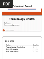 Topics: Process Control Terminology Control Principles Basic Control Loop Advance Control Loop Control Algorithm Control System Exercise Slide No: 3 - 10 11 - 18 19 - 23 24 - 31 32 - 46 47 - 54 55 - 59