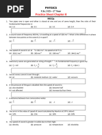 By electronically listening for echoes at a frequency different from the broadcast frequency, the motion detector can produce beeps of audible sound in synchronization with the fetal heartbeat. 43. A siren mounted on the roof of a firehouse emits sound at a frequency of 900 Hz. A steady wind is blowing with a speed of 15.0 m/s. Taking the speed of sound in calm air to be 343 m/s, find the wavelength of the sound (a) upwind of the siren and (b) downwind of the siren. Firefighters are approaching the siren from various directions at 15.0 m/s. What frequency does a firefighter hear (c) if he or she is approaching from an upwind position, so that he or she is moving in the direction in which the wind is blowing? (d) if he or she is approaching from a downwind position and moving against the wind? 64. A jet flies toward higher altitude at a constant speed of 1 963 m/s in a direction making an angle 0 with the horizontal (Fig. P17.64). An observer on the ground hears the jet for the first time when it is directly overhead. Determine the value of 0 if the speed of sound in air is 340 m/s. With particular experimental methods, it is possible to produce and observe in a long thin rod both a longitudinal wave and a transverse wave whose speed depends primarily on tension in the rod. The speed of the longitudinal wave is determined by the Youngs modulus and the density of the material asSqrt(Y.Modulus/Linear density) . The transverse wave can be modeled as a wave in a stretched string. A particular metal rod is 150 cm long and has a radius of 0.200 cm and a mass of 50.9 g. Youngs modulus for the material is 6.80 & 1010 N/m2. What must the tension in the rod be if the ratio of the speed of longitudinal waves to the speed of transverse waves is 8.00? 7. Review problem. A series of pulses, each of amplitude 0.150 m, is sent down a string that is attached to a post at one end. The pulses are reflected at the post and travel back along the string without loss of amplitude. What is the net displacement at a point on the string where two pulses are crossing, (a) if the string is rigidly attached to the post? (b) if the end at which reflection occurs is free to slide up and down? Two identical speakers 10.0 m apart are driven by the same oscillator with a frequency of f " 21.5 Hz (Fig. P18.12). (a) Explain why a receiver at point A records a minimum in sound intensity from the two speakers. (b) If the receiver is moved in the plane of the speakers, what path should it take so that the intensity remains at a minimum? That is, deterFigure P18.12 mine the relationship between x and y (the coordinates of the receiver) that causes the receiver to record a minimum in sound intensity. Take the speed of sound to be 344 m/s. 14. Two waves in a long string have wave functions given by and where y1 , y2 , and x are in meters and t is in seconds. (a) Determine the positions of the nodes of the resulting standing wave. (b) What is the maximum transverse position of an