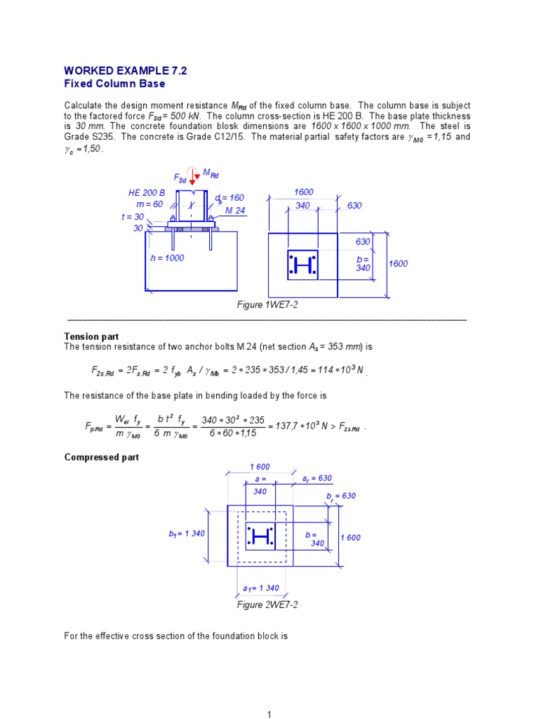 Figure 1WE7-2 _______________________________________________________________________________ Tension part The tension resistance of two anchor bolts M 24 (net section As = 353 mm) is