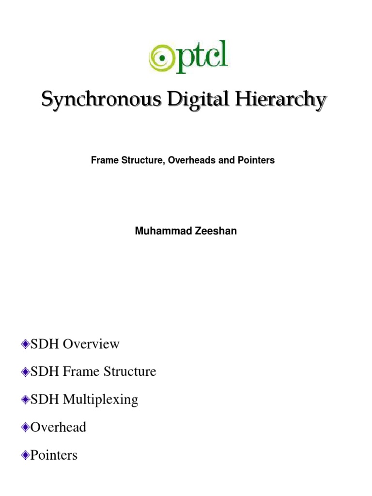 SDH Overview SDH Frame Structure SDH Multiplexing Overhead Pointers