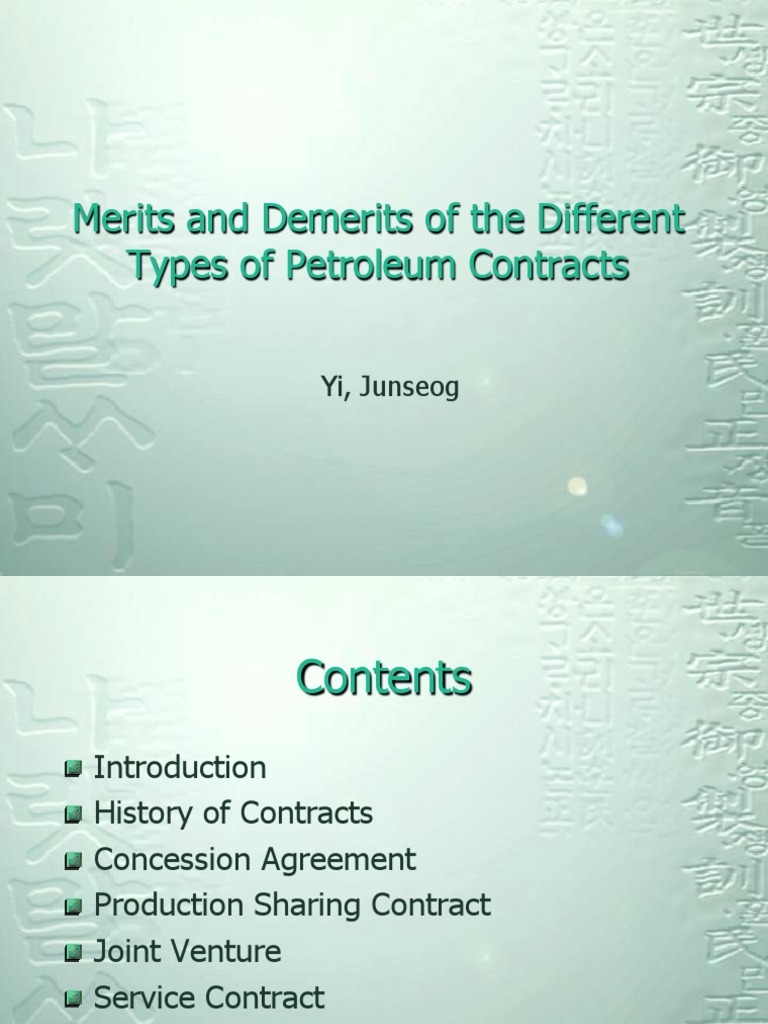 Merits and Demerits of the Different Types of Petroleum Contracts