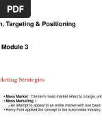 Segmentation is the process of classifying customers into groups which share some common characteristic Targeting involves the process of evaluating each