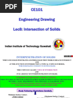 Two solids may intersect in different ways. The axis of solid may be parallel, inclined or perpendicular to each other. Their axis may be Intersecting or offset or coinciding. The intersecting solids could be To draw the COI, the first step is to draw two combination of any types of solids of three views of the intersecting solids as per (covered in projection of solid). condition. Then locate the line of intersection COI may be a smooth curve or a segmental-line curve, depending on the type of the intersecting curve. If both of the intersecting surfaces are falt, COI will be segmented-line curve. If one of the intersecting surface is flat and other is curved, COI will be smooth curve. If both of the intersecting surfaces are curved, COI will be smooth curve. (LOI) between two edges or an edge and a surface of the two intersecting solids. All the LOI when joined gives COI. LOI could be straight or curved