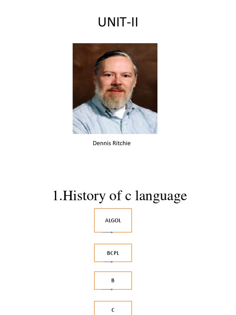 project multics to develop an operating system. 1969, language B was developed by Ken Thompson. c was develop in 1972 by Dennis M. Ritchie at Bell Labs(AT&T) in USA. 1988 c language was standardized by ANSI as ANSI C ANSI- American National Standards Institute.
