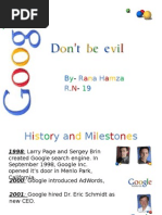 Governance: 10 votes per share for holder of Class B stock & one vote per Class A share. Corporate Values: 1. Dont be evil: preserve integrity of search results; 2. Technology matters: invested heavily in infrastructure; 3. We make our own rules: unconventional management practices.