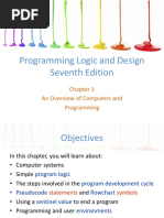 In this chapter, you will learn about: Computer systems Simple program logic The steps involved in the program development cycle Pseudocode statements and flowchart symbols Using a sentinel value to end a program Programming and user environments The evolution of programming models