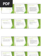 10. Counseling and Coaching: management consultants can render an excellent service to managers and entrepreneurs who need strictly personal feedback on their leadership style, behavior, work habits. Personal counseling is necessarily a one to one relationship based on trust and respect. It can be informal and should be strictly confidential.