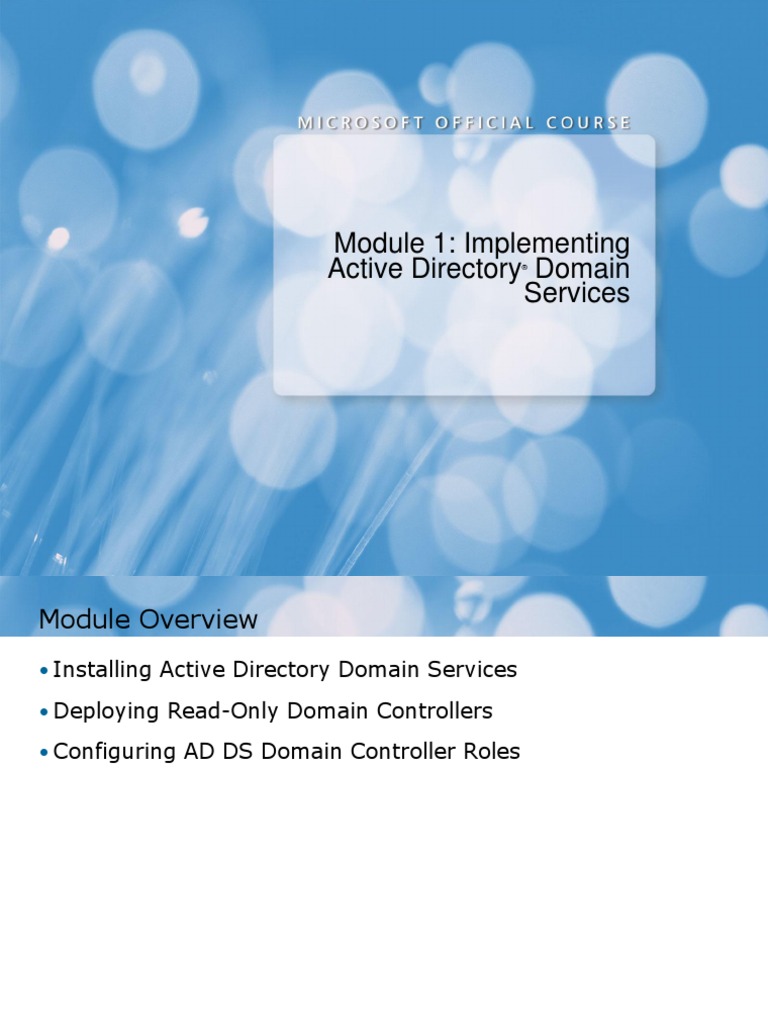 Exercise 2: Installing and Configuring an RODC Exercise 3: Configuring AD DS Domain Controller Roles