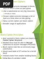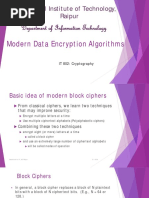 Similar to DES: block cipher (with different modes), but 128-bit blocks 128-bit, 192-bit, or 256-bit key Mix of permutations, S-boxes S-boxes based on modular arithmetic with polynomials: