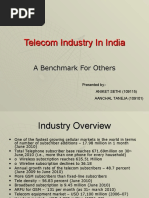 In recent years, the Indian telecom industry has witnessed phenomenal growth. A conducive business environment, favourable demographic outlook and the political stability enjoyed by the country have contributed to the growth of the industry. India achieved the distinction of having the world's lowest call rates (23 US cents), the fastest sale of million mobile phones (1 week) & the world's cheapest mobile handset (USD 20). Indian Telecom Industry Facts