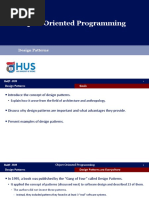 Object-Oriented programming languages [and paradigm] are more amenable to implementing design patterns Procedural languages: need to define Inheritance Polymorphism Encapsulation