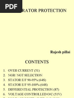 87 Differential 59 over -voltages 24V/HZ over fluxing 49S stator Over load 51 over -current 64s Ground Fault stator Inter-turn