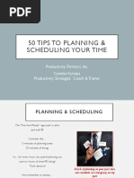 a day-timer (or PDA) if you dont already have one Start keeping your TODO list in fourquadrant form or ordered by priorities (not due dates) Do a time journal, or at least record number of hours of television/week Make a note in your day-timer to revisit this talk in 30 days (www.randypausch.com). At that time, ask yourself What behaviors have I changed?