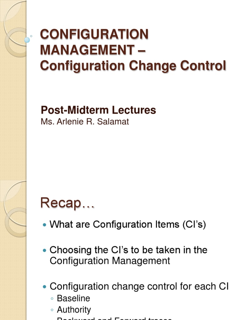 CONFIGURATION MANAGEMENT Configuration Change Control