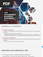 State Mapping if the guest process uses all virtual address space, intrinsic compatibility cannot be achieved Mapping of control transfers some potential trapping instructions may be removed User-level instruction FP format may be different OS operation host OS does not support exactly the same function as the guests native OS