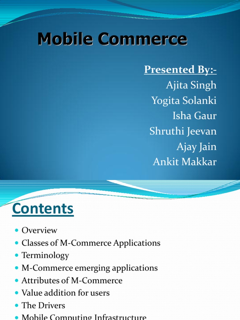 financial applications are likely to be one of the most important components of m-commerce. They could involve a variety of applications such as mobile banking and brokerage service, mobile money transfer, and mobile payments.